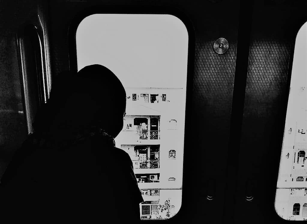A moving metro train where a girl is sitting listening to music on her phone. Scene The train leaves one platform and moves toward the next station. A young boy enters the metro compartment . The same compartment a young girl named Ananya is sitting and tuning into the radio. She glances around while tuning in to radio and looks at the young man. The man who had quite recently entered the same compartment as hers. The youthful lad was wearing a dark pathani ensemble matched with traditional footwear. He could be 6 ft tall. In his first impression, the guy can be mistaken to be from Kashmir for his fair skin and sharp facial features. She continued listening to the radio and shifted her view from the guy to her co-passengers. She hears in a radio declaration “Be cautious, Be Safe” after the recent terror attack in the country. The announcement further continued to alert people by saying, “If you find any unidentified bag, do not touch it. Call the police immediately. And if you find anyone suspicious, inform the nearest police station.” The person Kashmiri-looking-guy was writing / scribbling something in his notepad while glancing around. First, he gazed at one aged lady, kept his look settled on her for a few seconds. And continued jotting down something in his notepad. A short while later, Ananya found him shifting his gaze at a young man. this time followed by the same old incessant scribbling.