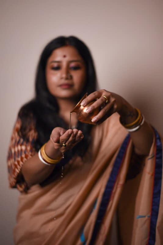 In the temple, we find water in the form of Shanti Jal(holy water) during aarti. A conch or earthen pot is used in a temple filled with water which is sprinkled over devotees in the form of Shanti jol. According to religious excerpts, Water plays a part in the cleansing and purification of the soul. After the cremation of the body, the remaining ashes are immersed in the Ganges for what we call as “mukti”.